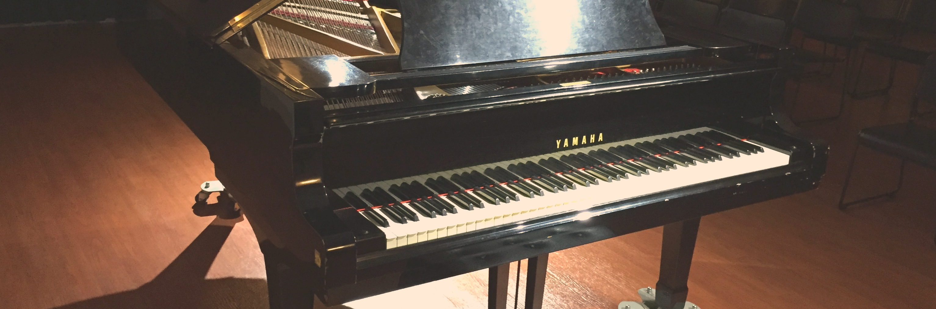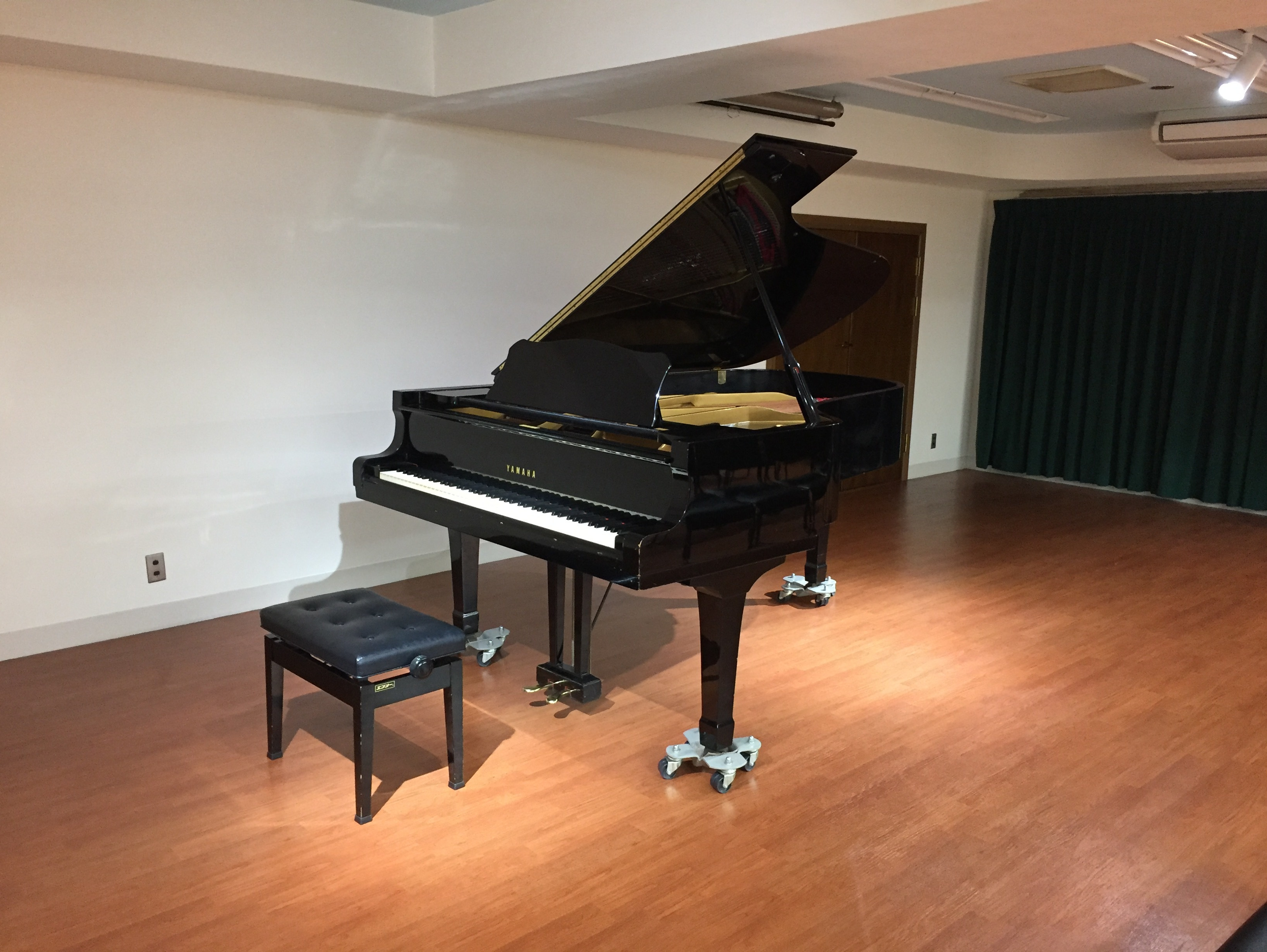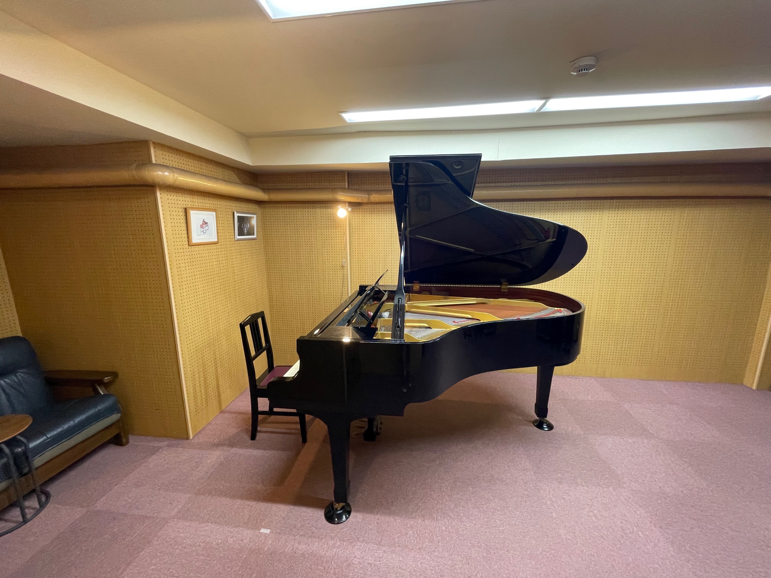 1970年代に製造されたYAMAHA C7で、大変希少な象牙鍵盤仕様のグランドピアノです。会館主催コンサートやおんがく教室のレッスン、合唱練習などで使用されてきましたが、音楽センター会館ホールACCOUSTICAにて一般の方にもご利用いただけるようになりました。