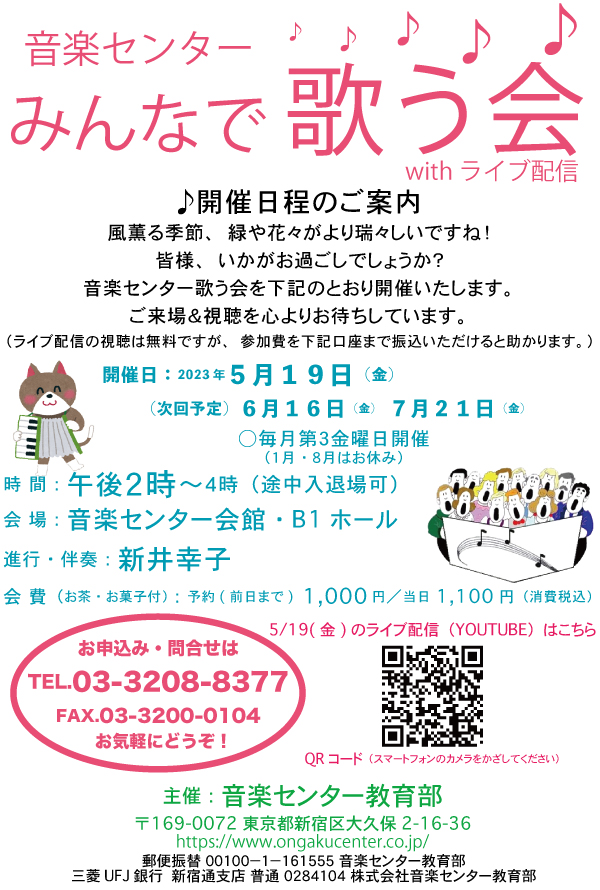 三菱UFJ銀行 新宿通支店 普通 0284104 株式会社音楽センター教育部