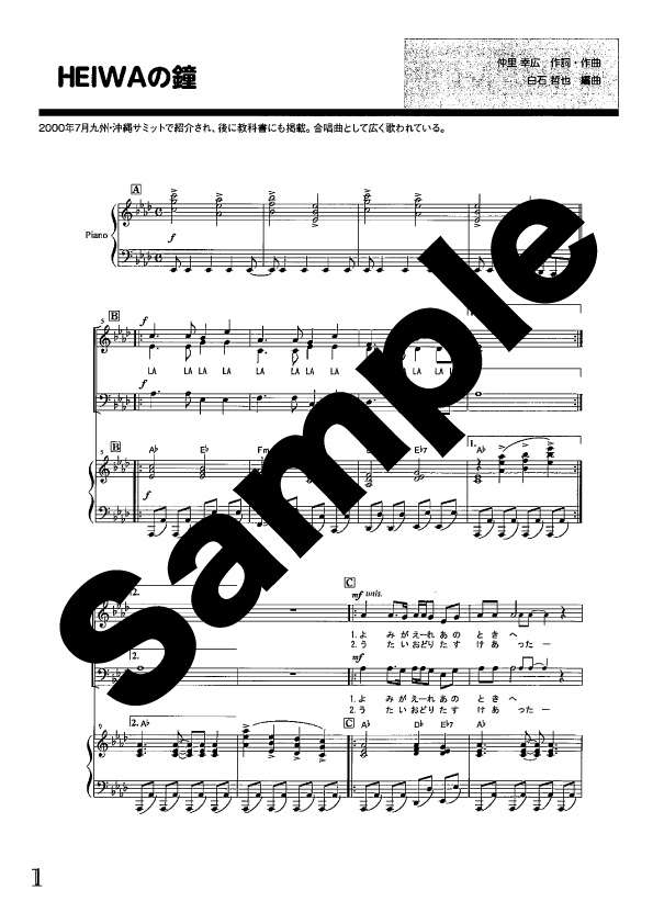 【合唱楽譜ピース】仲里幸広「HEIWAの鐘」(混声三部)