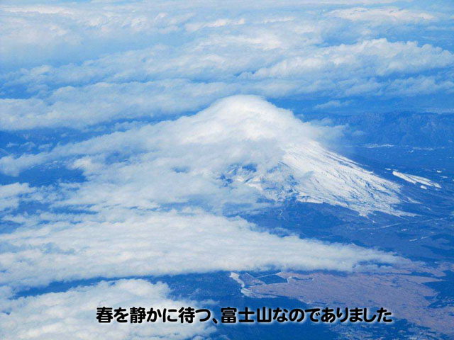 肌寒い羽田を飛び立ち、少ししたら、富士山が見えたんだよ。